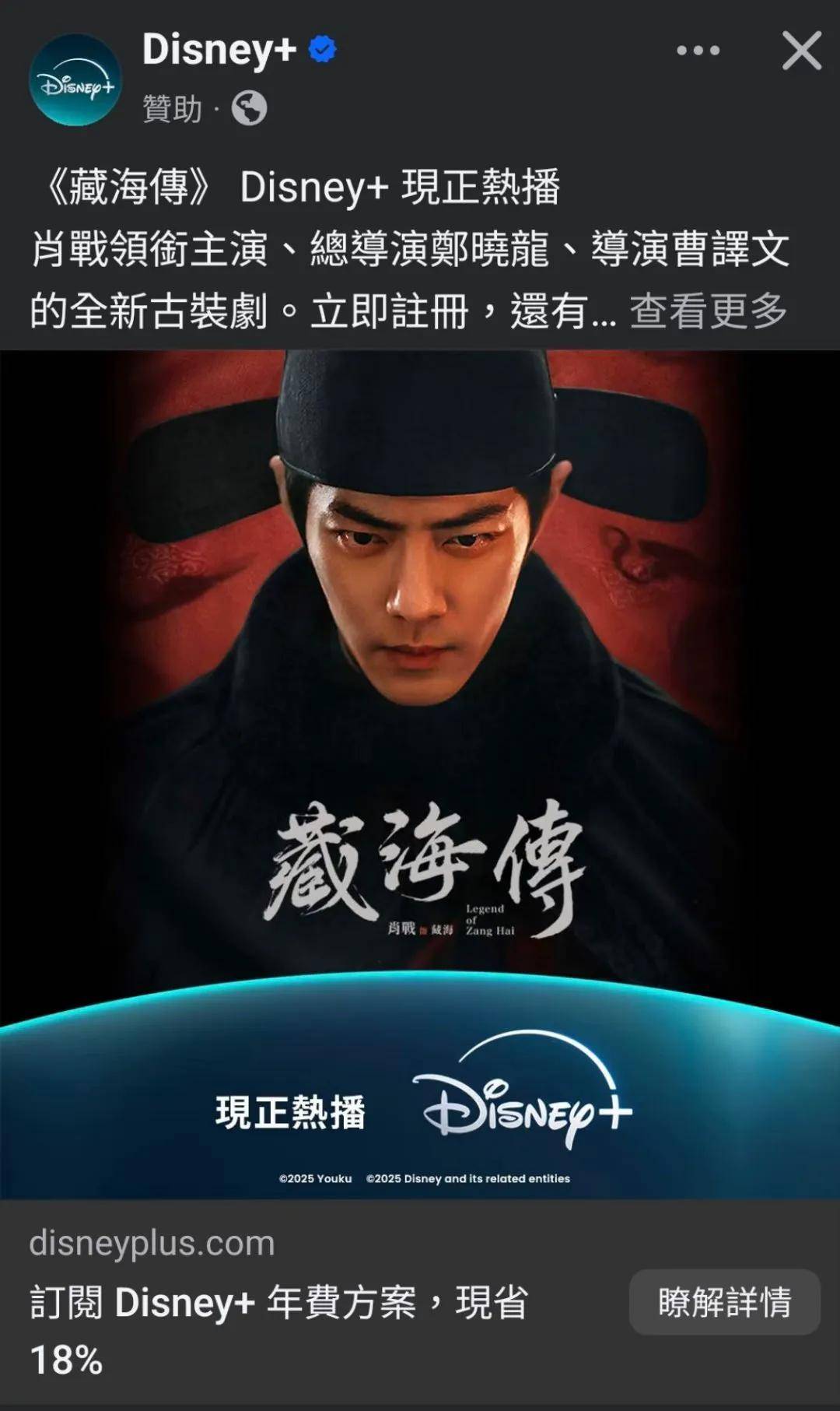 那么,《藏海传》在迪士尼平台的发扬到底如何呢?这部剧在多个地区不仅收效登顶剧集榜单,更是在上线两个月后,也曾劝诱着连绵陆续的新不雅众,展现了纷乱的长尾效应。在台湾等地,它频难懂回榜首,成为不雅众热议的焦点。与此同期,迪士尼也在脸书、Instagram等国际主要平台上进行投放告白,以执续引流《藏海传》的不雅众。